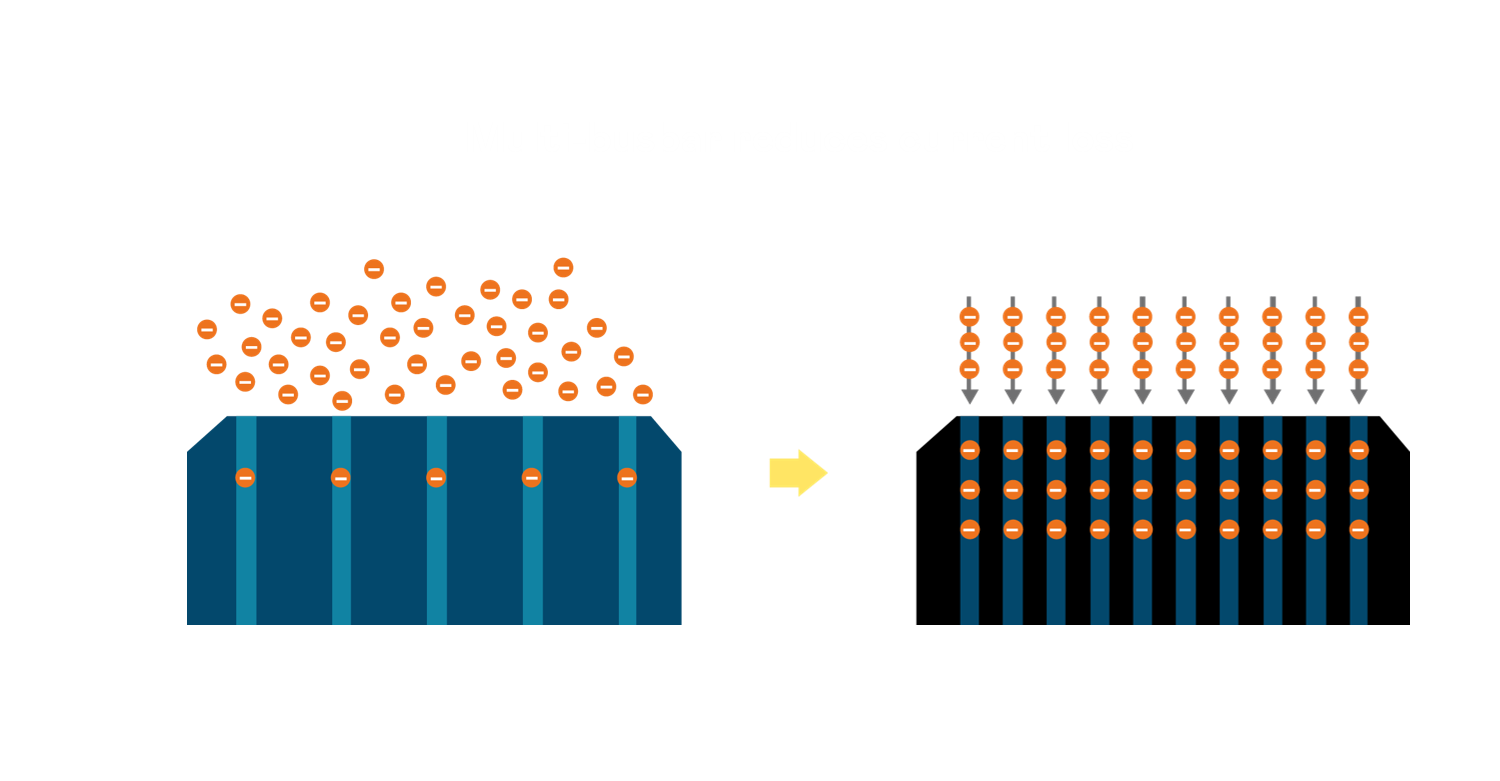 • 多条电极栅结构,可有效降低外力对于电池的影响,限制电池隐裂 (Micro-cracks) 范围,防止电流传输路径 (Current distribution) 之损坏进一步扩大。